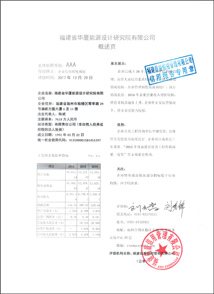 福建省華廈能源設(shè)計研究院有限公司 XDPJ201712205