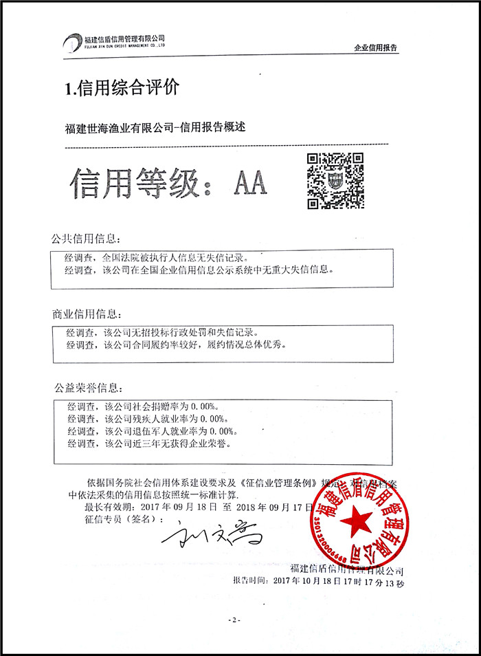 福建世海漁業(yè)有限公司 XDBG201710003