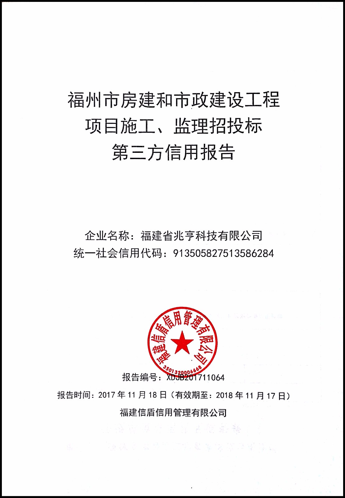 福建省兆亨科技有限公司 XDJB201711064