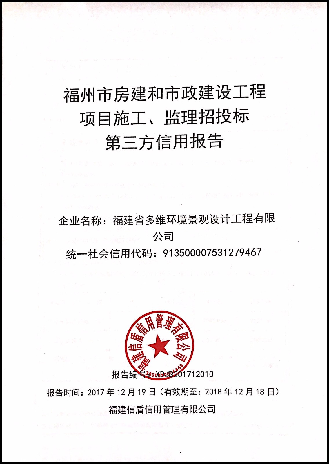福建省多維環境景觀設計工程有限公司 XDJB201712010