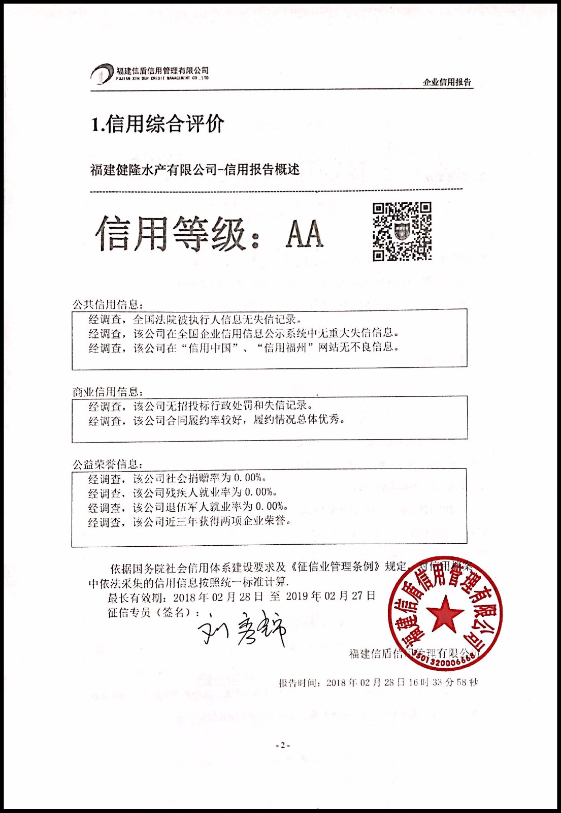 福建健隆水產有限公司 XDBG201802002