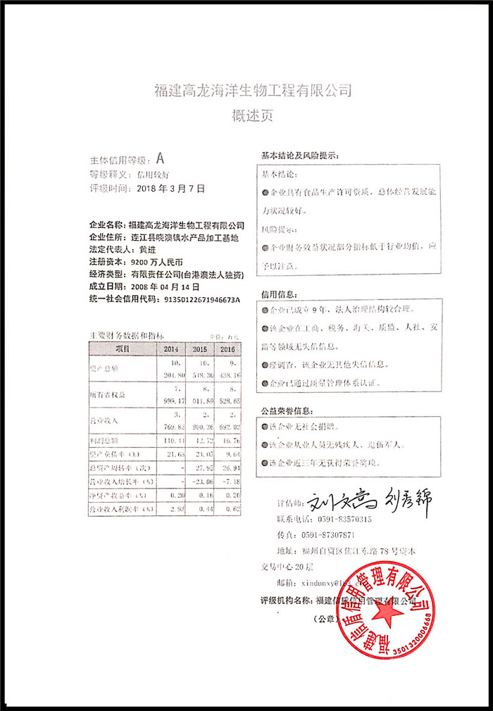 福建高龍海洋生物工程有限公司 XDPJ201803128