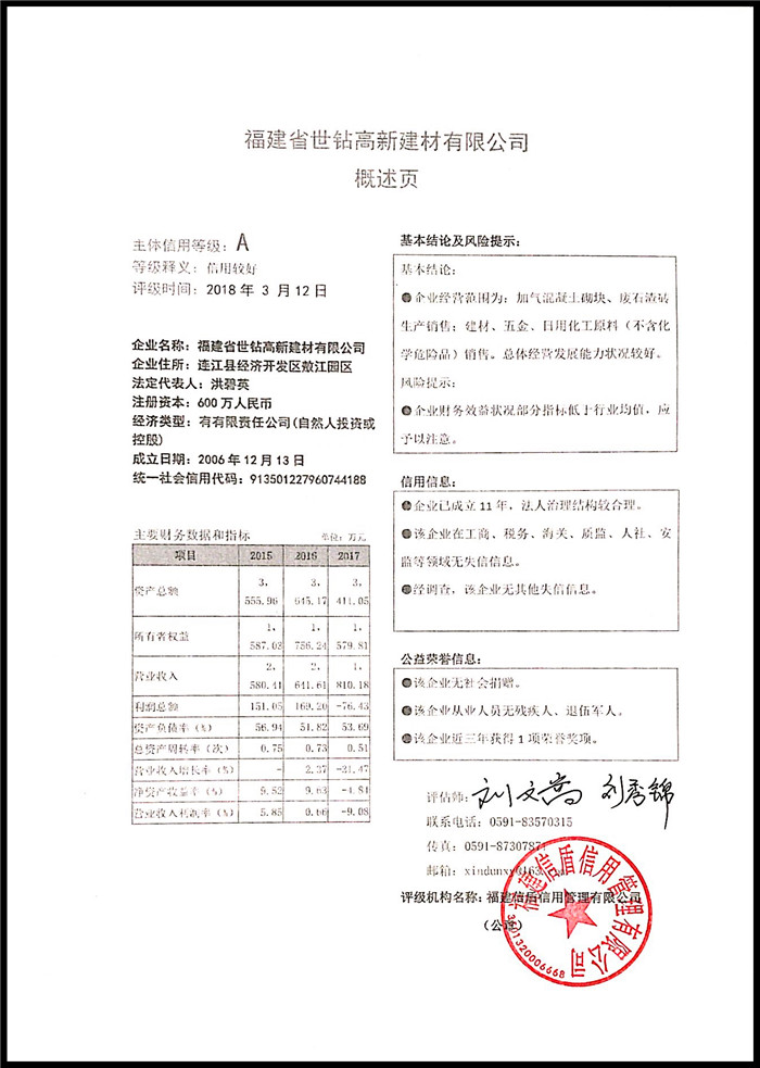 福建省世鉆高新建材有限公司 XDPJ201803189