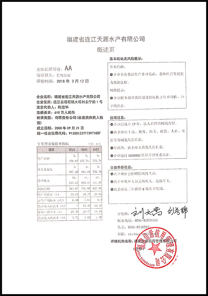 福建省連江天源水產(chǎn)有限公司 XDPJ201803195