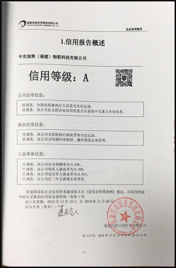 中農宸熙(福建)物聯科技有限公司 XDBG201812162