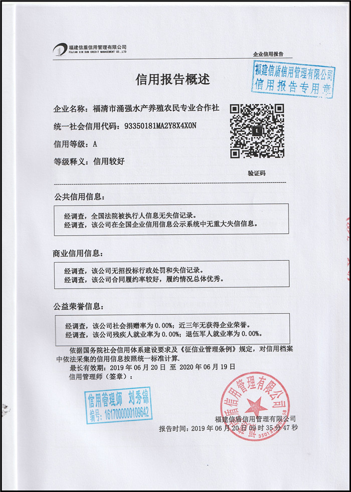 福清市涌強水產養殖農民專業合作社2019